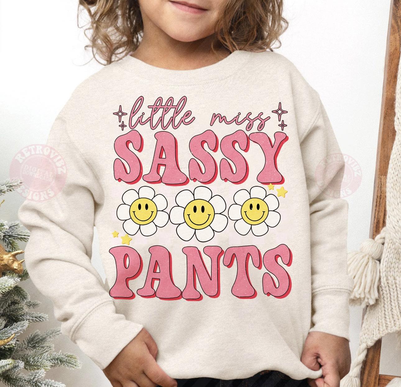 Introducing Little Miss Sassy Pants! This adorable tee is perfect for your little one and is available with a quick turnaround time. Customize your shirt with a crewneck option upon request. Made with high-quality graphics and always on sale for children at $15.