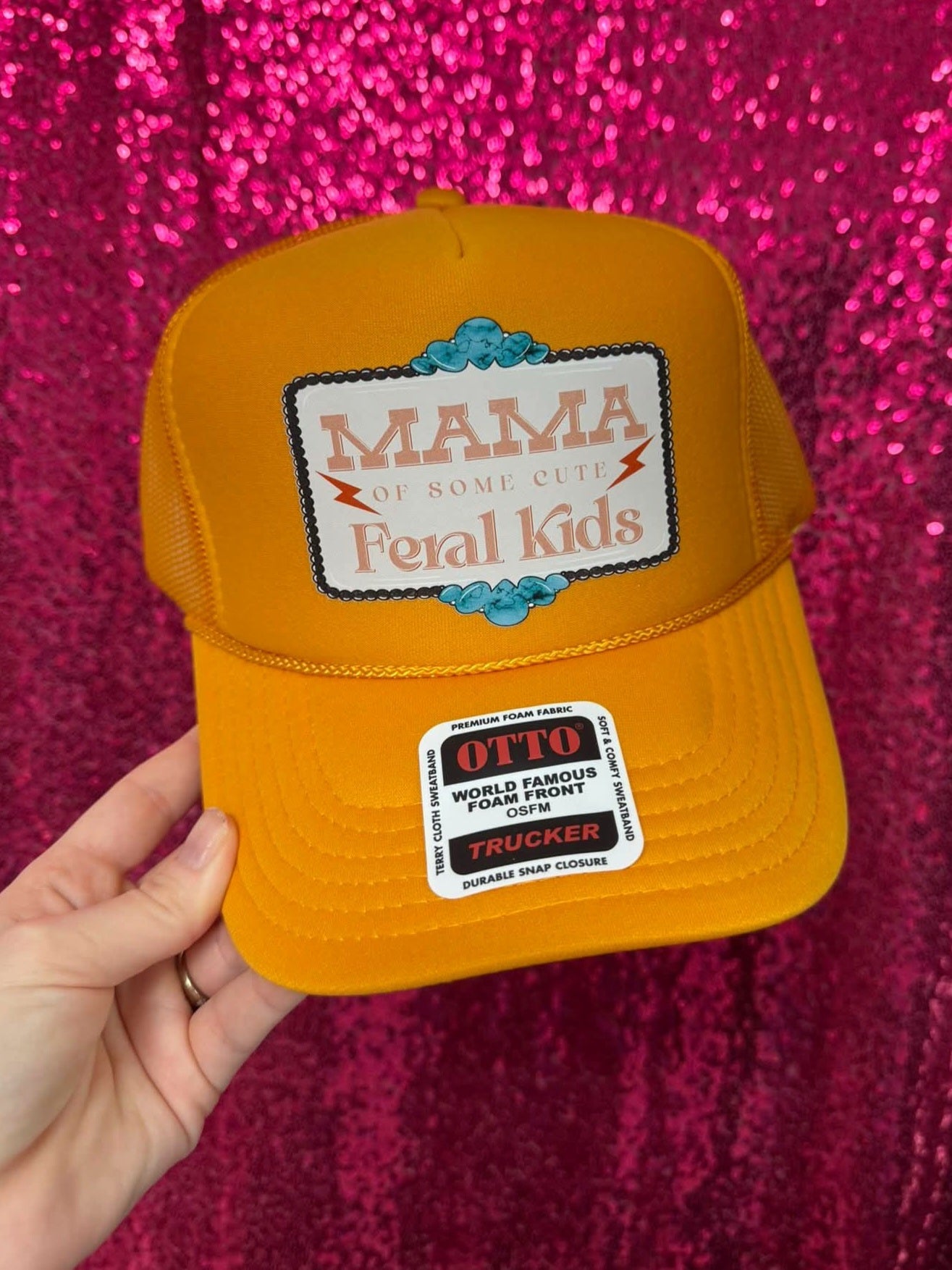 Celebrate your wild and wonderful kids with this charming "Mama Of Some Cute Feral Kids" hat. Available in several colors to suit your style—just reach out to select your favorite. Crafted for comfort and durability, it’s perfect for everyday wear. Wholesale options are also available for those looking to share this playful design with a wider audience.